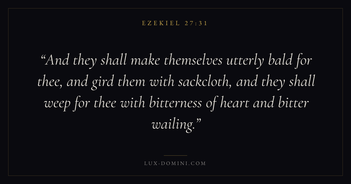 And they shall make themselves utterly bald for thee, and gird them with sackcloth, and they shall weep for thee with bitterness of heart and bitter wailing.