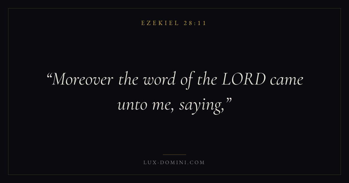 Books / Ezekiel / Chapter 28 / Verse 11 ← Ezekiel 28:10 Ezekiel 28:11 Ezekiel 28:12 → Moreover the word of the LORD came unto me, saying, Download verse card Share on Twitter Share on Facebook Pin it ✦ Key themes Justice and mercyHumilityTruthGlory of God Read with Ezekiel 28:12Micah 6:8Amos 5:24Philippians 2:3 Related topics Bible verses about justice and mercyBible verses about humilityBible verses about truth ✦ Ezekiel Chapter 28 verses V. 1 V. 2 V. 3 V. 4 V. 5 V. 6 V. 7 V. 8 V. 9 V. 10 V. 11 V. 12 V. 13 V. 14 V. 15 V. 16 V. 17 V. 18 V. 19 V. 20 V. 21 V. 22 V. 23 V. 24 V. 25 V. 26