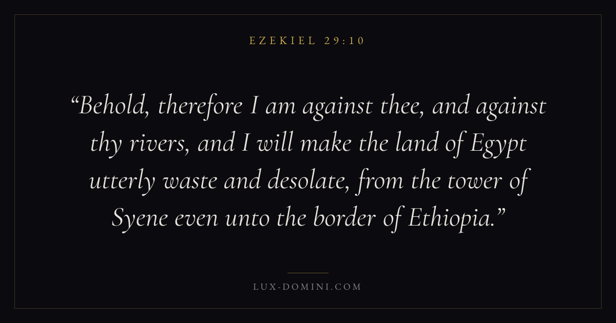 Behold, therefore I am against thee, and against thy rivers, and I will make the land of Egypt utterly waste and desolate, from the tower of Syene even unto the border of Ethiopia.