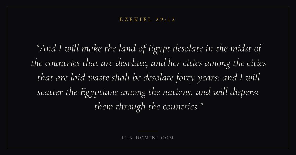 And I will make the land of Egypt desolate in the midst of the countries that are desolate, and her cities among the cities that are laid waste shall be desolate forty years: and I will scatter the Egyptians among the nations, and will disperse them through the countries.