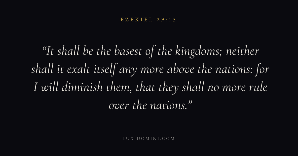 It shall be the basest of the kingdoms; neither shall it exalt itself any more above the nations: for I will diminish them, that they shall no more rule over the nations.