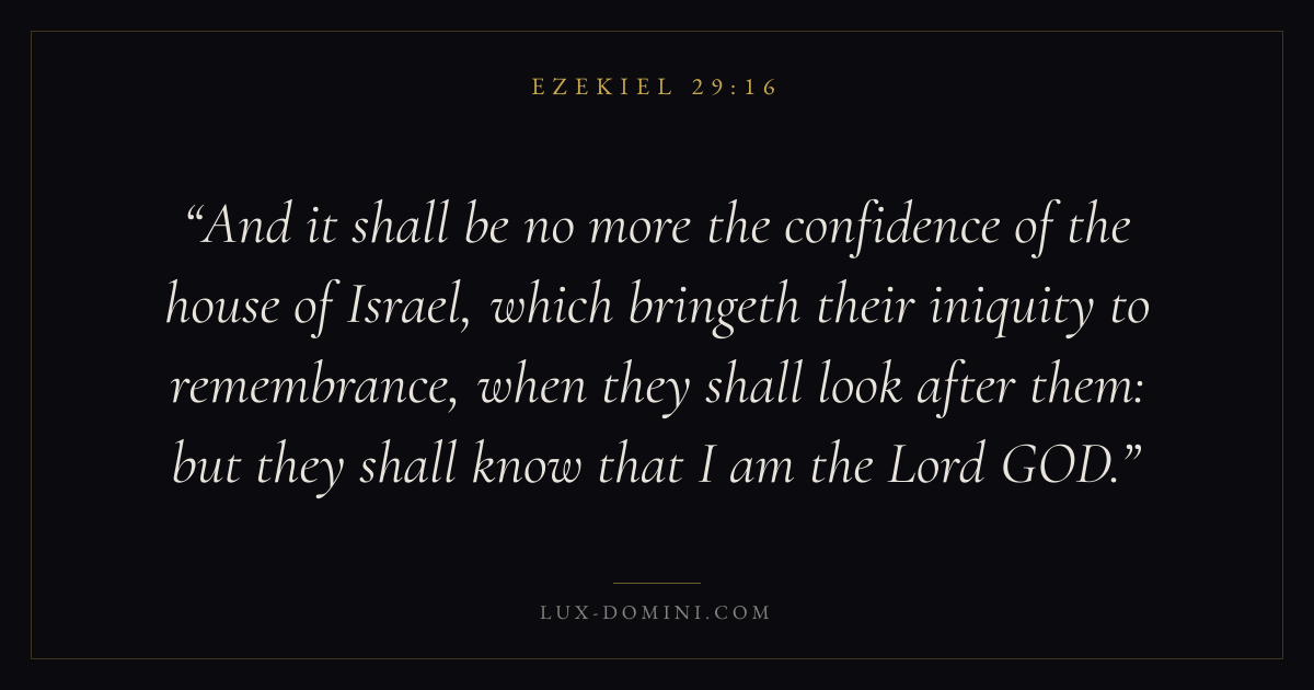 And it shall be no more the confidence of the house of Israel, which bringeth their iniquity to remembrance, when they shall look after them: but they shall know that I am the Lord GOD.