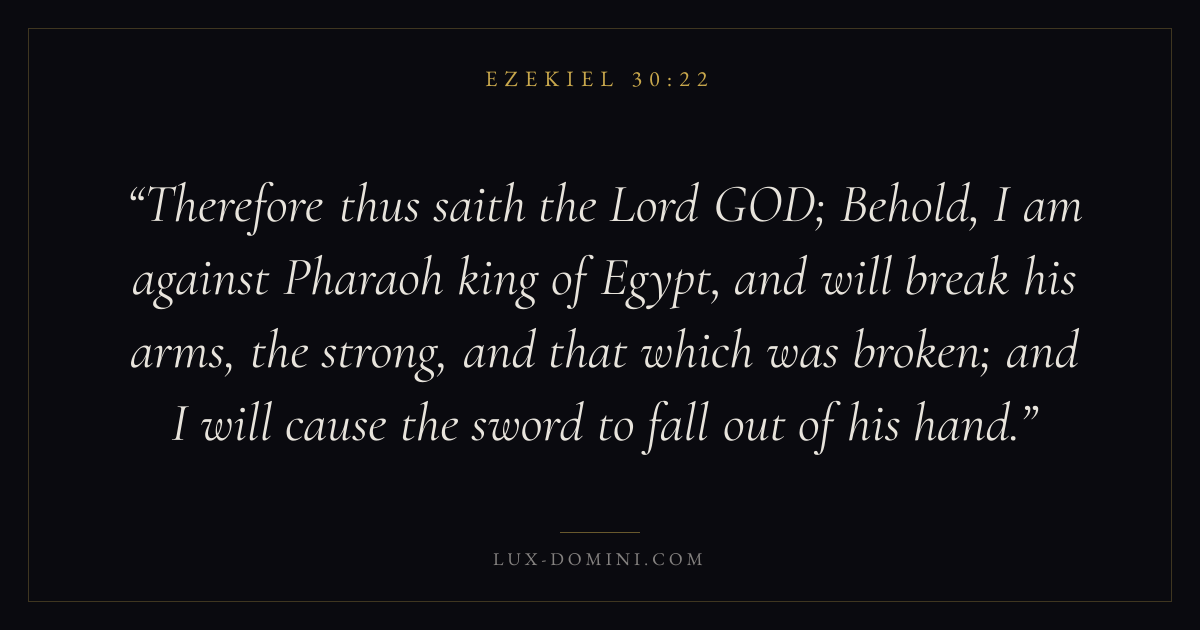Therefore thus saith the Lord GOD; Behold, I am against Pharaoh king of Egypt, and will break his arms, the strong, and that which was broken; and I will cause the sword to fall out of his hand.