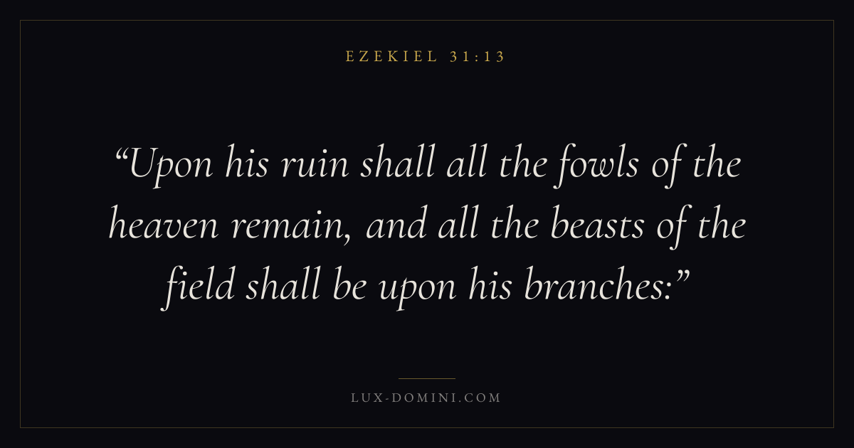 Upon his ruin shall all the fowls of the heaven remain, and all the beasts of the field shall be upon his branches: