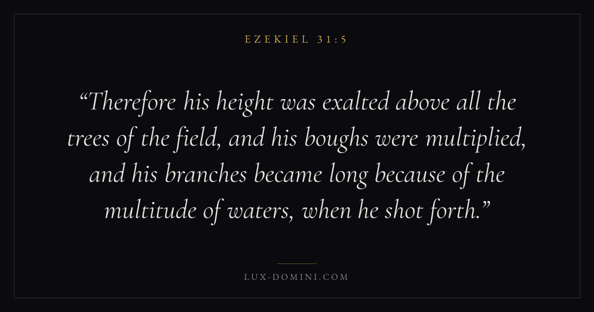 Therefore his height was exalted above all the trees of the field, and his boughs were multiplied, and his branches became long because of the multitude of waters, when he shot forth.