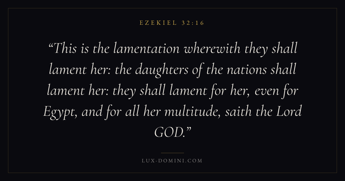 This is the lamentation wherewith they shall lament her: the daughters of the nations shall lament her: they shall lament for her, even for Egypt, and for all her multitude, saith the Lord GOD.
