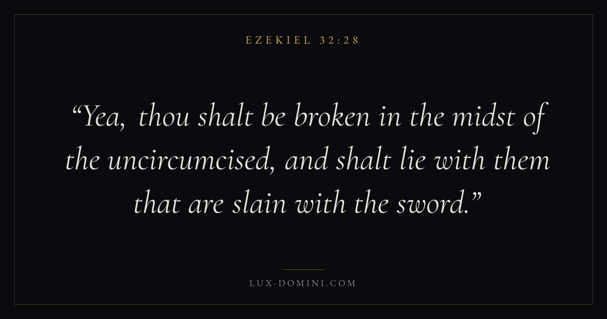 Yea, thou shalt be broken in the midst of the uncircumcised, and shalt lie with them that are slain with the sword.