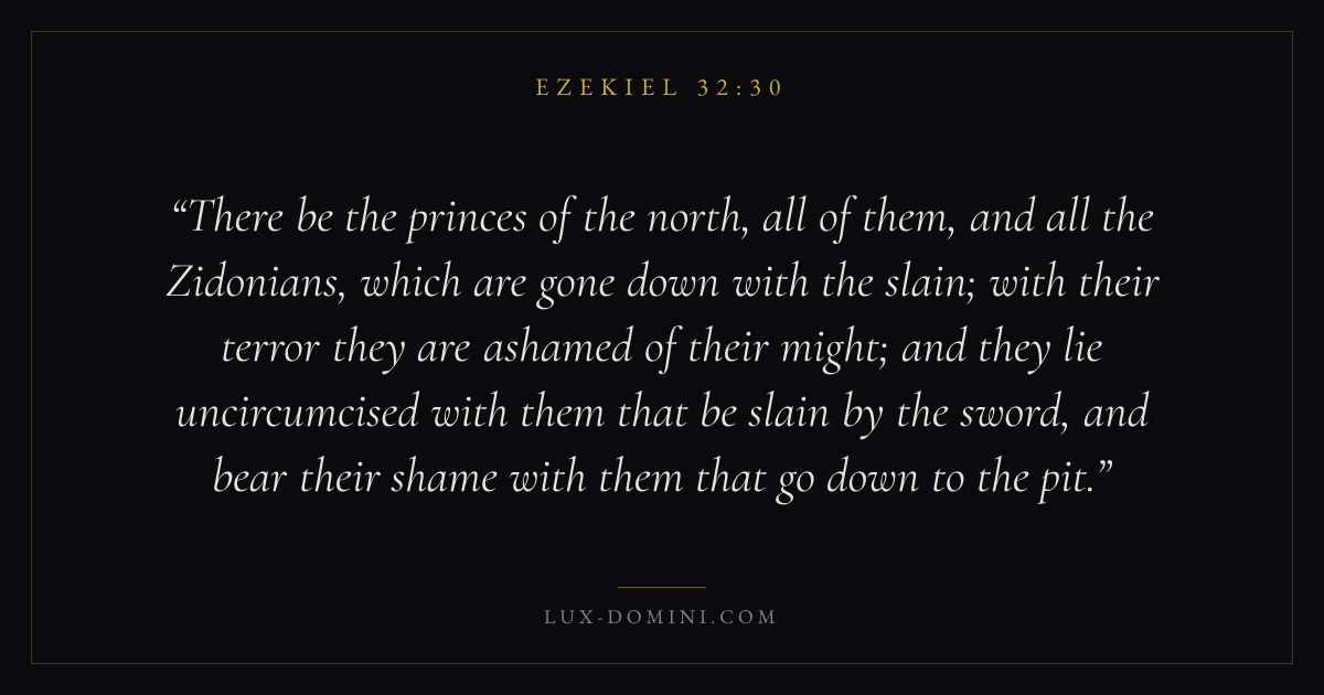 There be the princes of the north, all of them, and all the Zidonians, which are gone down with the slain; with their terror they are ashamed of their might; and they lie uncircumcised with them that be slain by the sword, and bear their shame with them that go down to the pit.