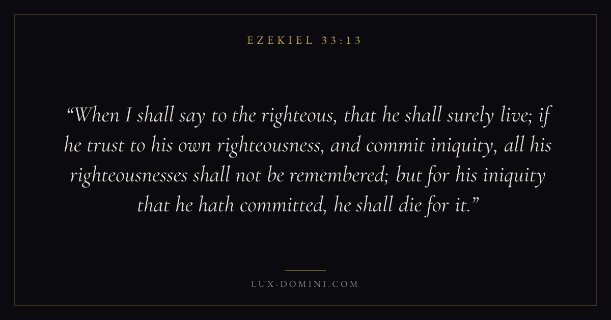 When I shall say to the righteous, that he shall surely live; if he trust to his own righteousness, and commit iniquity, all his righteousnesses shall not be remembered; but for his iniquity that he hath committed, he shall die for it.