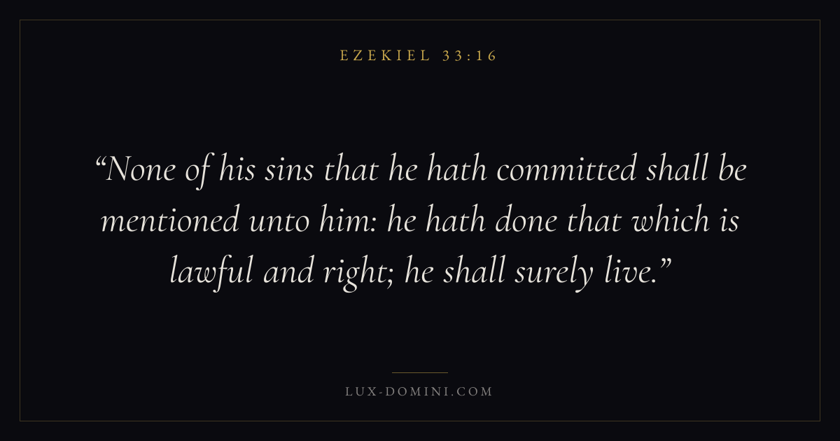 None of his sins that he hath committed shall be mentioned unto him: he hath done that which is lawful and right; he shall surely live.