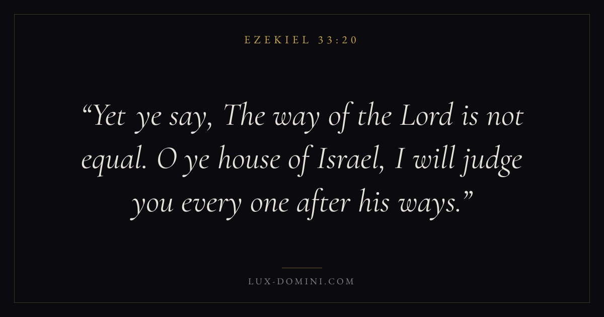 Yet ye say, The way of the Lord is not equal. O ye house of Israel, I will judge you every one after his ways.