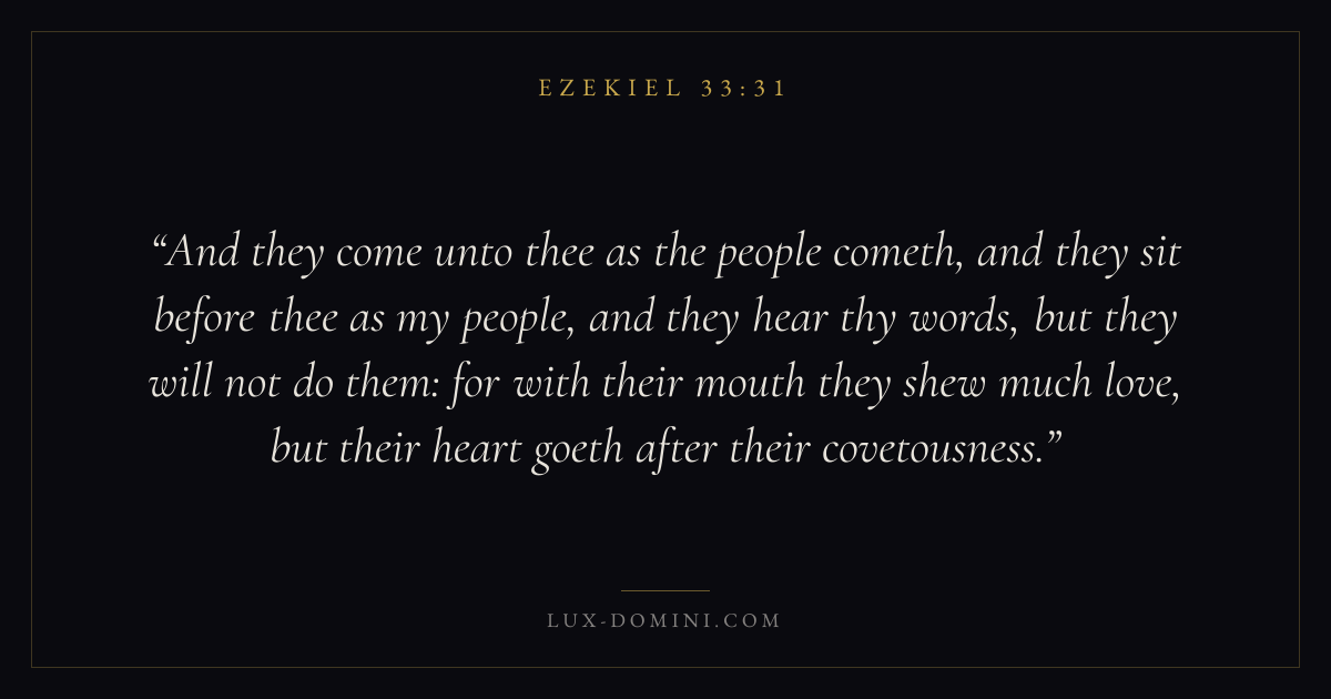 And they come unto thee as the people cometh, and they sit before thee as my people, and they hear thy words, but they will not do them: for with their mouth they shew much love, but their heart goeth after their covetousness.