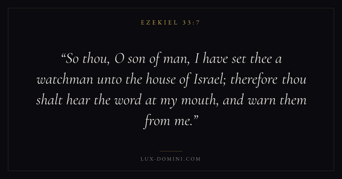 So thou, O son of man, I have set thee a watchman unto the house of Israel; therefore thou shalt hear the word at my mouth, and warn them from me.