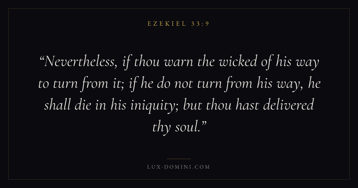Nevertheless, if thou warn the wicked of his way to turn from it; if he do not turn from his way, he shall die in his iniquity; but thou hast delivered thy soul.