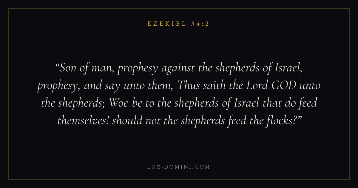 Son of man, prophesy against the shepherds of Israel, prophesy, and say unto them, Thus saith the Lord GOD unto the shepherds; Woe be to the shepherds of Israel that do feed themselves! should not the shepherds feed the flocks?