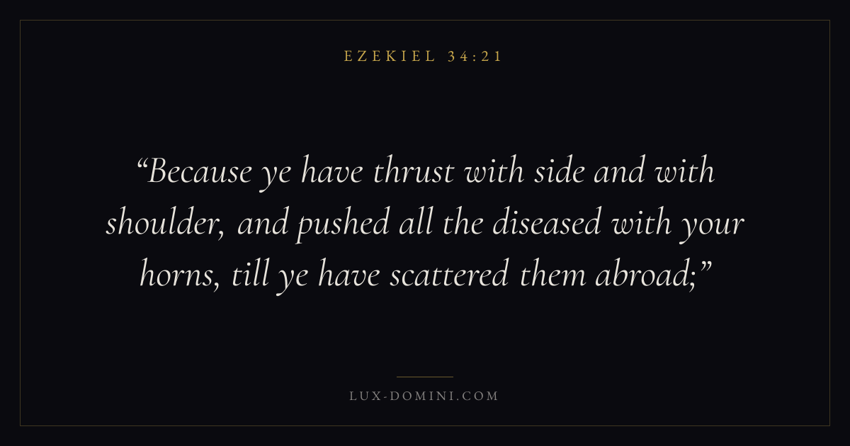 Because ye have thrust with side and with shoulder, and pushed all the diseased with your horns, till ye have scattered them abroad;