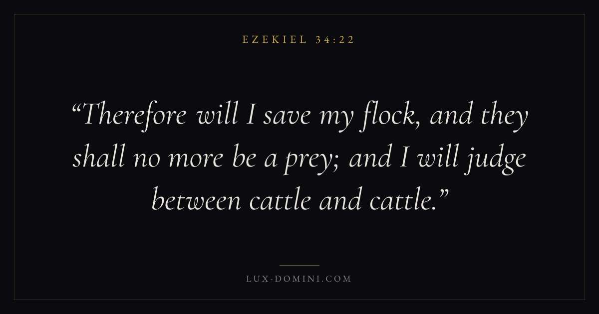 Therefore will I save my flock, and they shall no more be a prey; and I will judge between cattle and cattle.