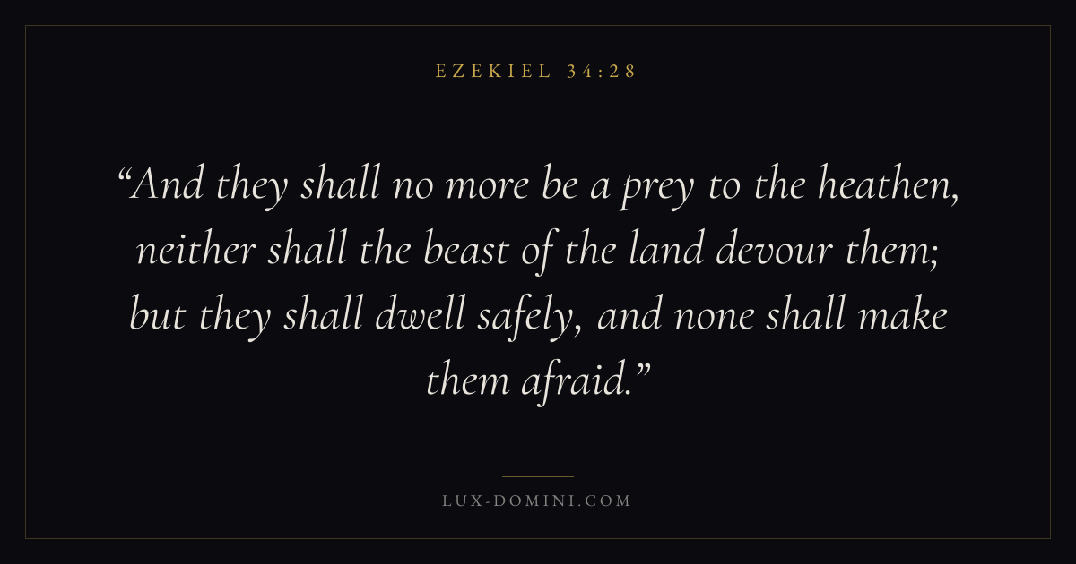 And they shall no more be a prey to the heathen, neither shall the beast of the land devour them; but they shall dwell safely, and none shall make them afraid.