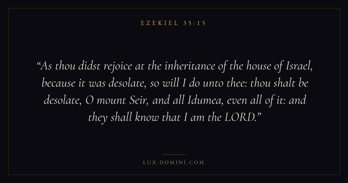 As thou didst rejoice at the inheritance of the house of Israel, because it was desolate, so will I do unto thee: thou shalt be desolate, O mount Seir, and all Idumea, even all of it: and they shall know that I am the LORD.