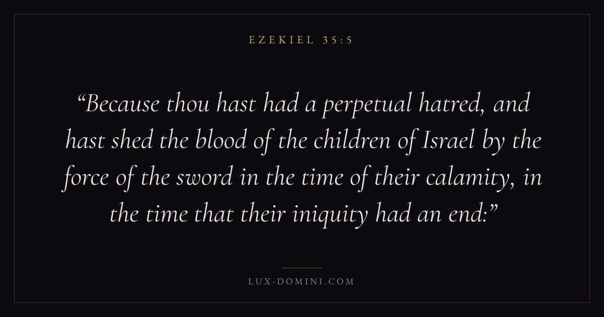 Because thou hast had a perpetual hatred, and hast shed the blood of the children of Israel by the force of the sword in the time of their calamity, in the time that their iniquity had an end: