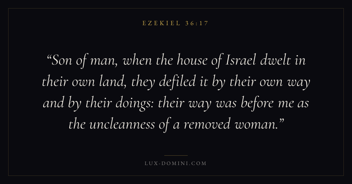 Son of man, when the house of Israel dwelt in their own land, they defiled it by their own way and by their doings: their way was before me as the uncleanness of a removed woman.