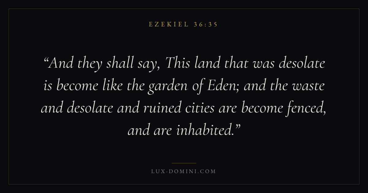 And they shall say, This land that was desolate is become like the garden of Eden; and the waste and desolate and ruined cities are become fenced, and are inhabited.