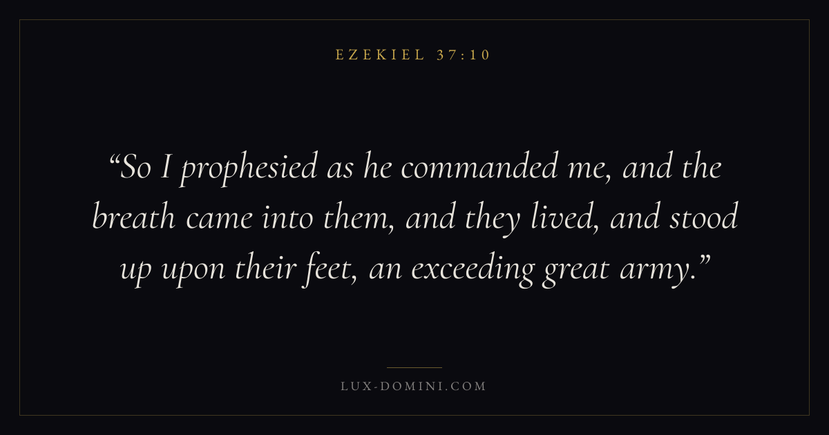 So I prophesied as he commanded me, and the breath came into them, and they lived, and stood up upon their feet, an exceeding great army.