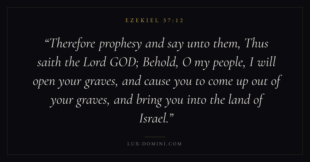 Therefore prophesy and say unto them, Thus saith the Lord GOD; Behold, O my people, I will open your graves, and cause you to come up out of your graves, and bring you into the land of Israel.