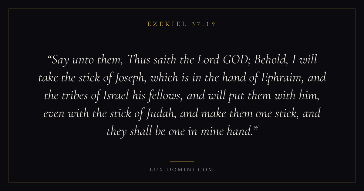 Say unto them, Thus saith the Lord GOD; Behold, I will take the stick of Joseph, which is in the hand of Ephraim, and the tribes of Israel his fellows, and will put them with him, even with the stick of Judah, and make them one stick, and they shall be one in mine hand.