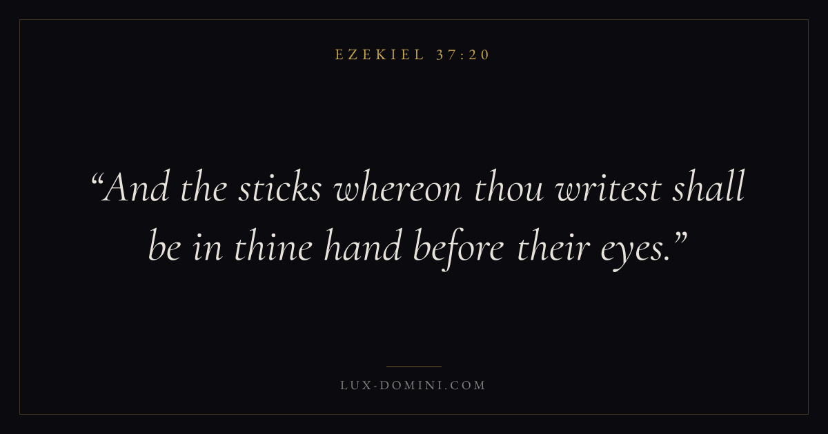 And the sticks whereon thou writest shall be in thine hand before their eyes.