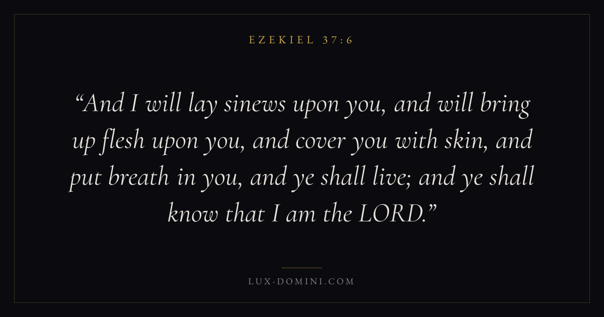 And I will lay sinews upon you, and will bring up flesh upon you, and cover you with skin, and put breath in you, and ye shall live; and ye shall know that I am the LORD.