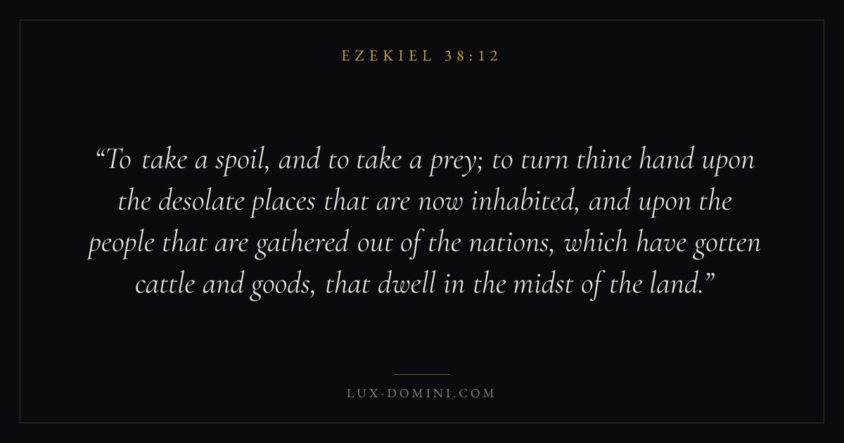To take a spoil, and to take a prey; to turn thine hand upon the desolate places that are now inhabited, and upon the people that are gathered out of the nations, which have gotten cattle and goods, that dwell in the midst of the land.