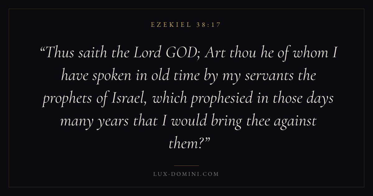 Thus saith the Lord GOD; Art thou he of whom I have spoken in old time by my servants the prophets of Israel, which prophesied in those days many years that I would bring thee against them?