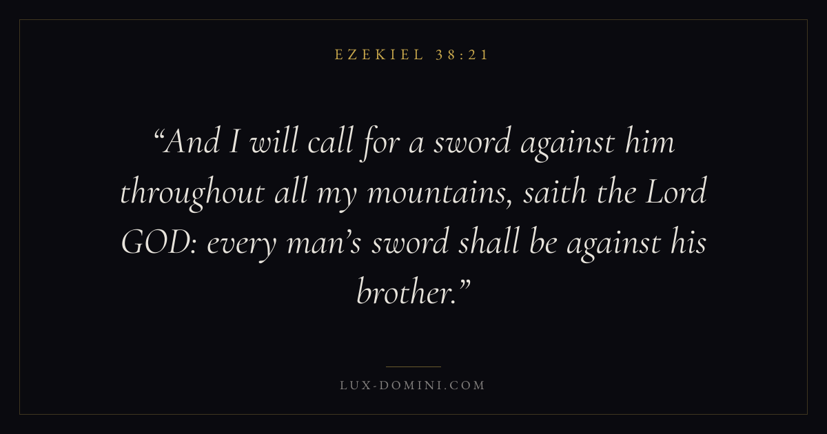 And I will call for a sword against him throughout all my mountains, saith the Lord GOD: every man’s sword shall be against his brother.