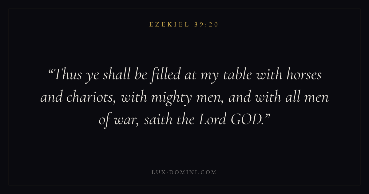 Thus ye shall be filled at my table with horses and chariots, with mighty men, and with all men of war, saith the Lord GOD.