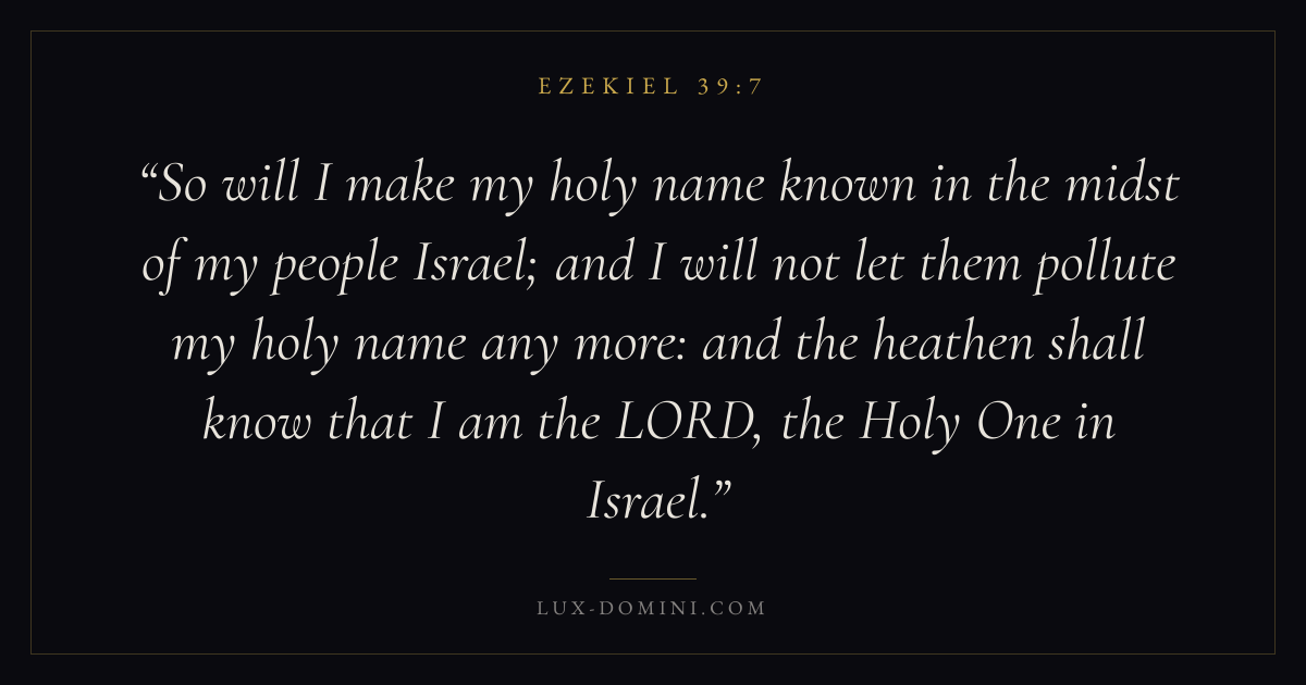 So will I make my holy name known in the midst of my people Israel; and I will not let them pollute my holy name any more: and the heathen shall know that I am the LORD, the Holy One in Israel.
