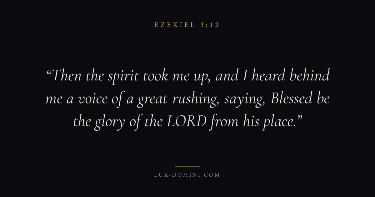 Then the spirit took me up, and I heard behind me a voice of a great rushing, saying, Blessed be the glory of the LORD from his place.