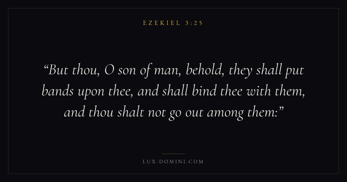 But thou, O son of man, behold, they shall put bands upon thee, and shall bind thee with them, and thou shalt not go out among them: