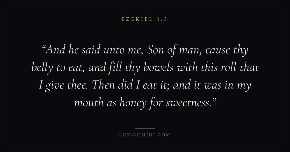 And he said unto me, Son of man, cause thy belly to eat, and fill thy bowels with this roll that I give thee. Then did I eat it; and it was in my mouth as honey for sweetness.