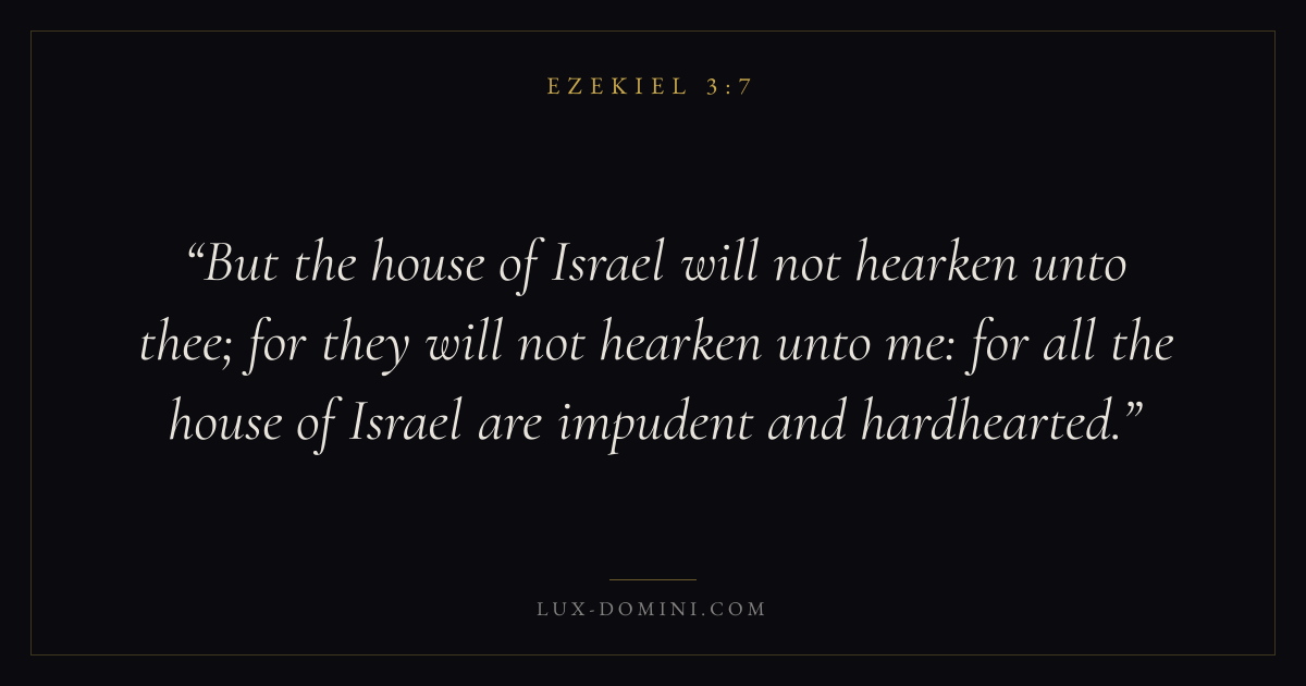 But the house of Israel will not hearken unto thee; for they will not hearken unto me: for all the house of Israel are impudent and hardhearted.