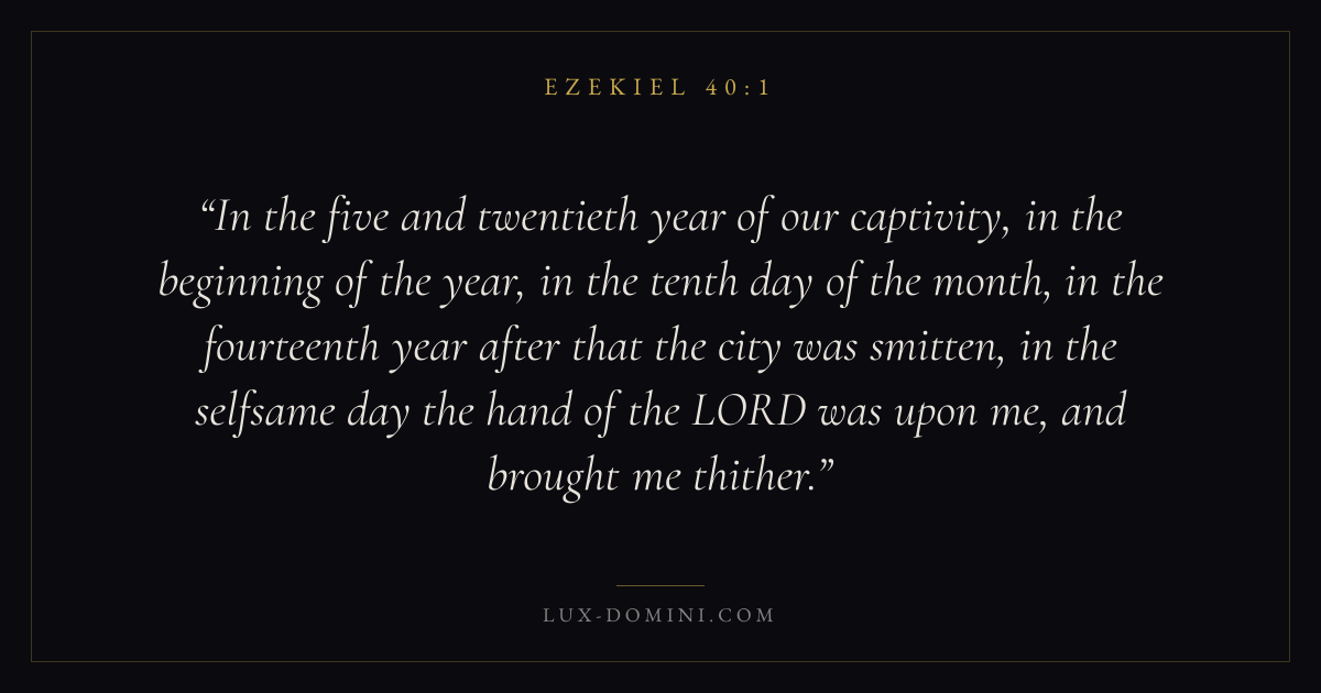 In the five and twentieth year of our captivity, in the beginning of the year, in the tenth day of the month, in the fourteenth year after that the city was smitten, in the selfsame day the hand of the LORD was upon me, and brought me thither.