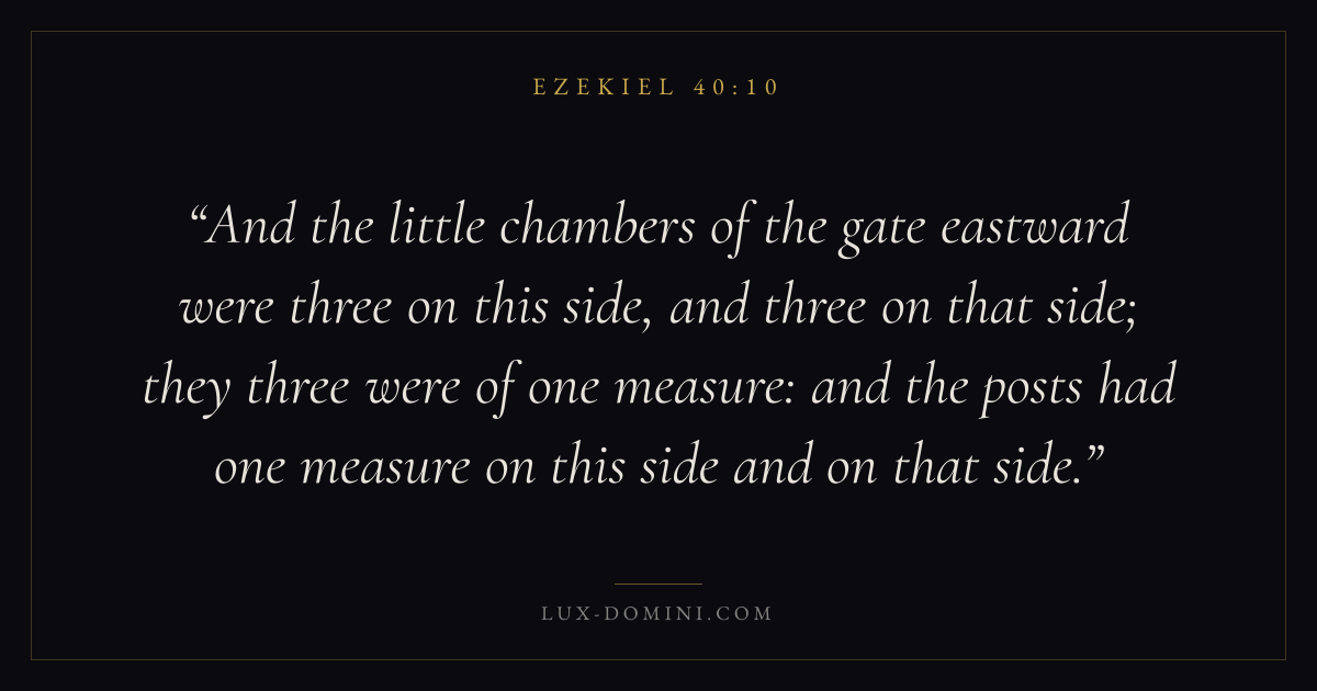 And the little chambers of the gate eastward were three on this side, and three on that side; they three were of one measure: and the posts had one measure on this side and on that side.