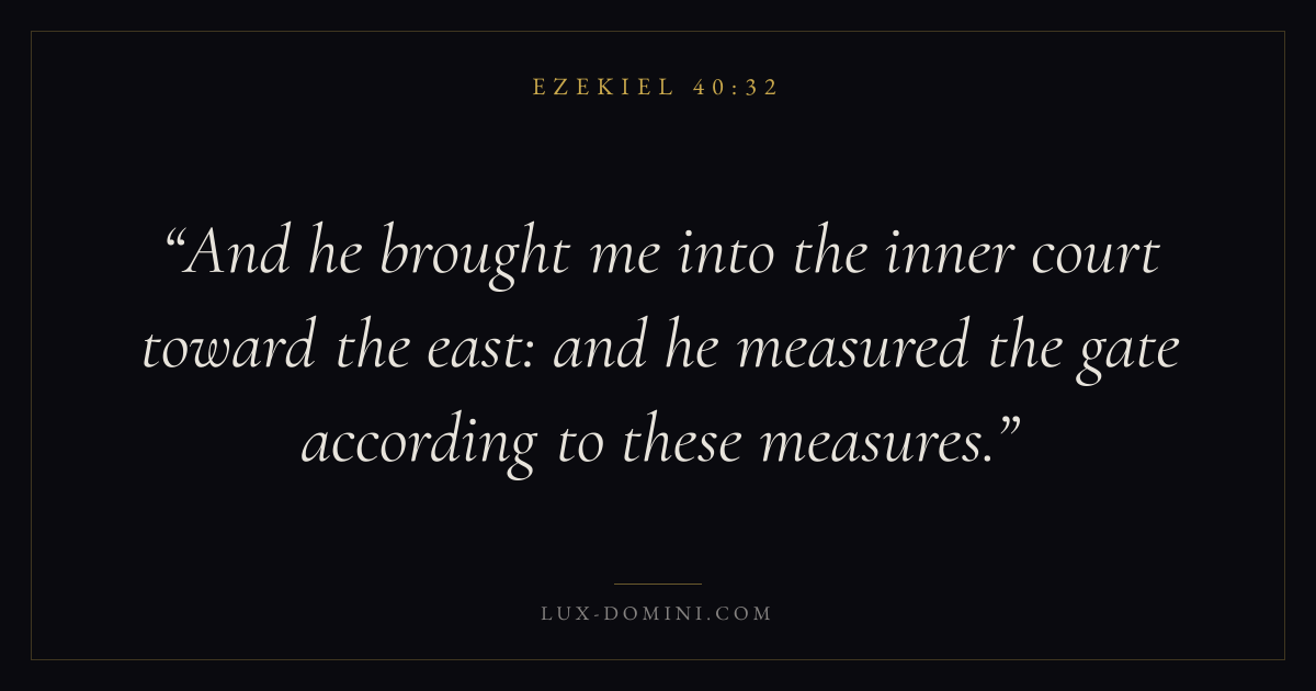 And he brought me into the inner court toward the east: and he measured the gate according to these measures.