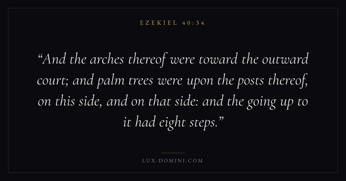 And the arches thereof were toward the outward court; and palm trees were upon the posts thereof, on this side, and on that side: and the going up to it had eight steps.