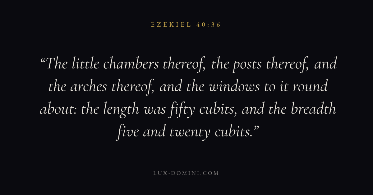 The little chambers thereof, the posts thereof, and the arches thereof, and the windows to it round about: the length was fifty cubits, and the breadth five and twenty cubits.