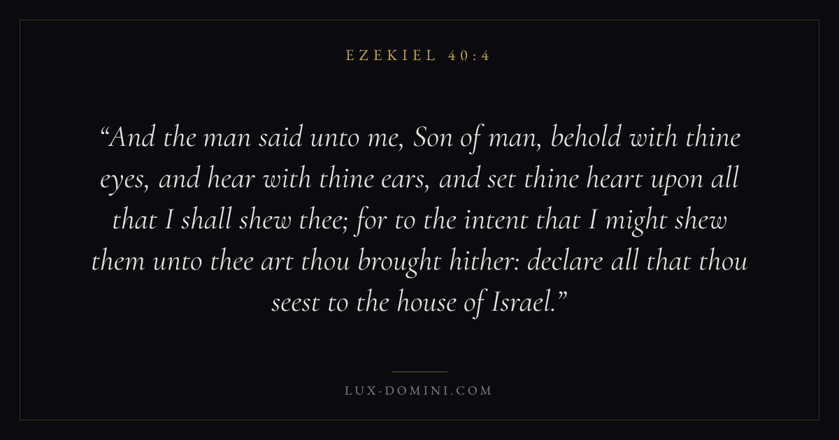 And the man said unto me, Son of man, behold with thine eyes, and hear with thine ears, and set thine heart upon all that I shall shew thee; for to the intent that I might shew them unto thee art thou brought hither: declare all that thou seest to the house of Israel.