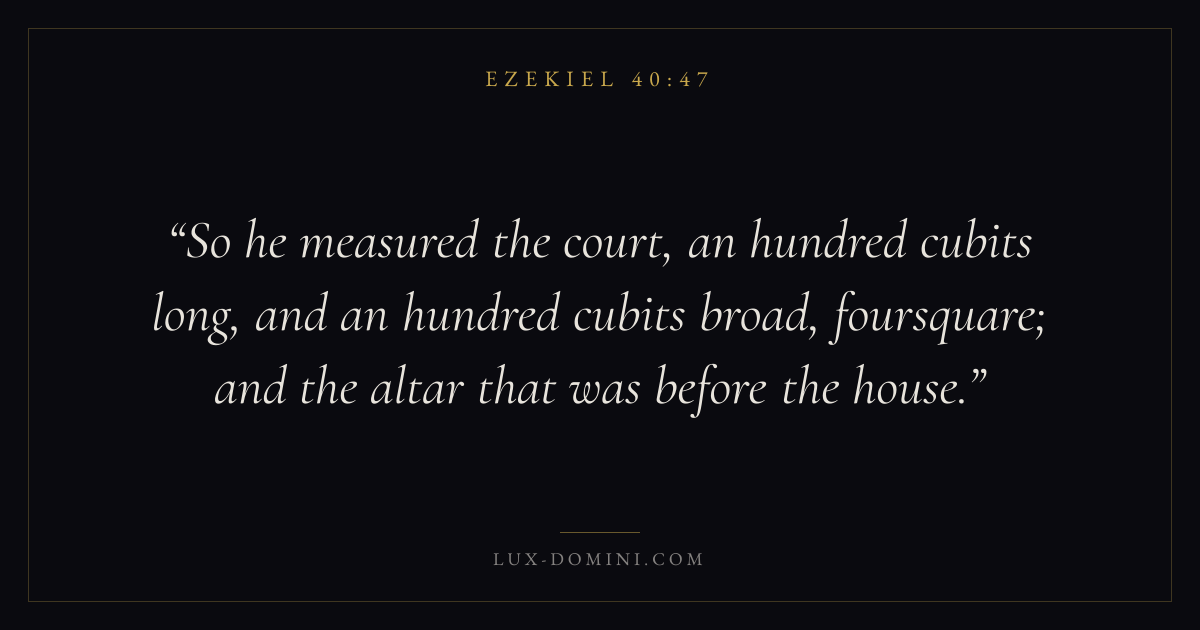 So he measured the court, an hundred cubits long, and an hundred cubits broad, foursquare; and the altar that was before the house.