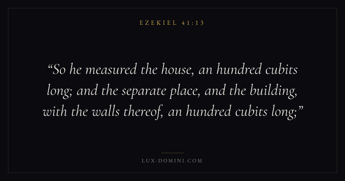 So he measured the house, an hundred cubits long; and the separate place, and the building, with the walls thereof, an hundred cubits long;
