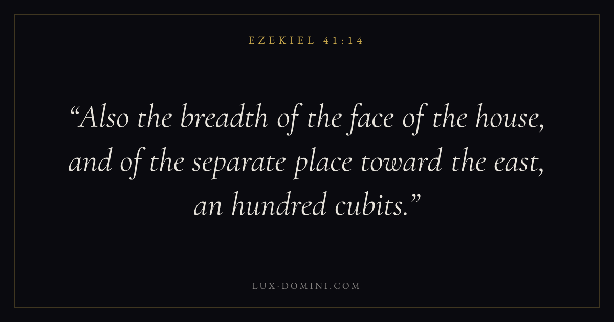 Also the breadth of the face of the house, and of the separate place toward the east, an hundred cubits.