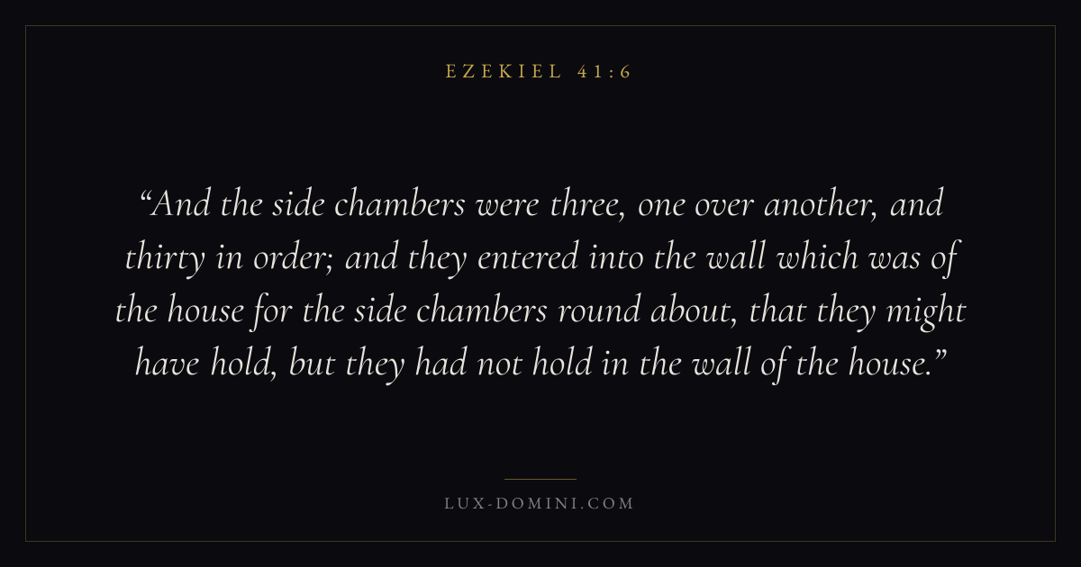 And the side chambers were three, one over another, and thirty in order; and they entered into the wall which was of the house for the side chambers round about, that they might have hold, but they had not hold in the wall of the house.